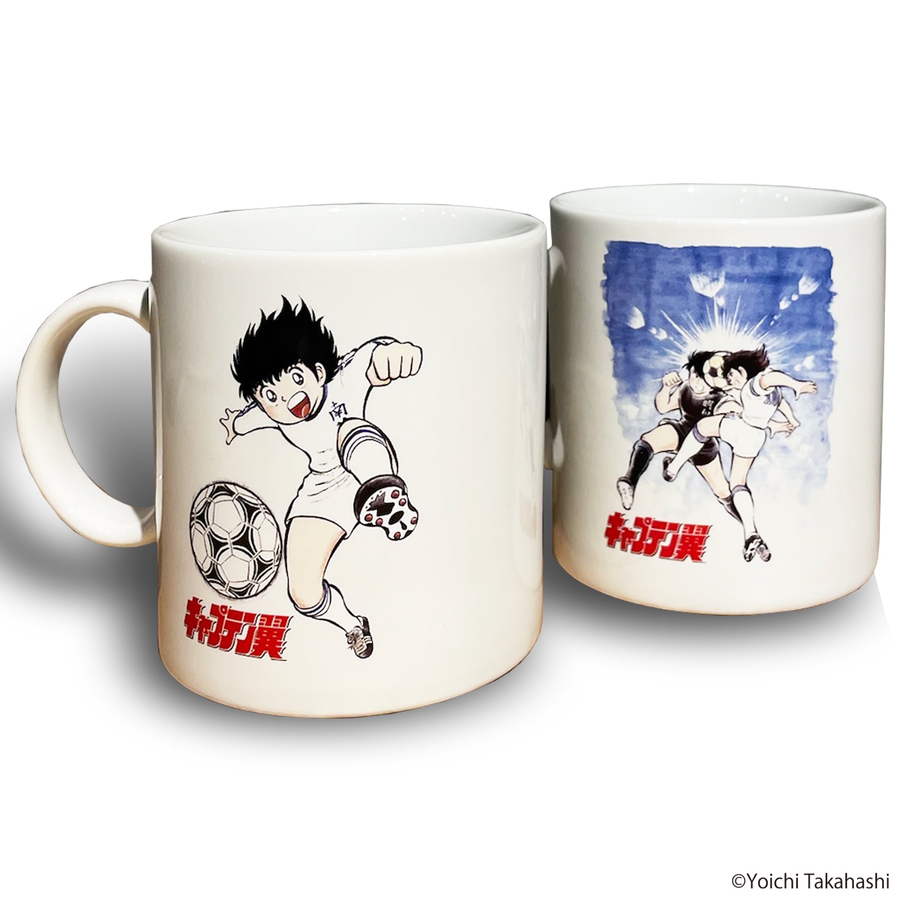 *コミック5巻表紙絵に登場する「大空翼」と「日向小次郎」の競り合いの場面のイラストを使用したモデルがTYPEBのマグカップ。